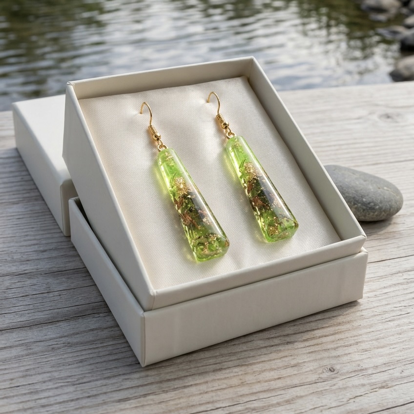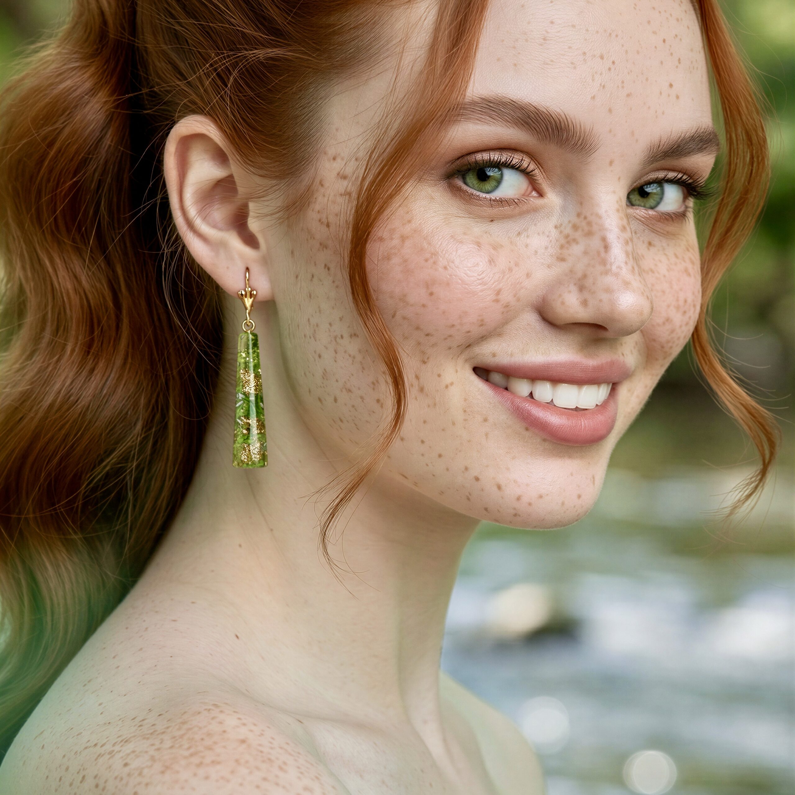 On les adore ! La nouvelle forme « Kelly » de ces boucles d’oreilles orgonite péridot est résolument tendance… Et mine de rien, elles sont énergisantes, réharmonisantes et purificatrices, grâce à leur subtile composition de péridot, cristal de roche, feuille d’or 14 carats et métaux ; cela donne beaucoup de vitalité au corps et à l’esprit, équilibre nos émotions et nous apporte une pointe de gaîté tout en éloignant la fatigue…On en a bien besoin, pas vrai ?