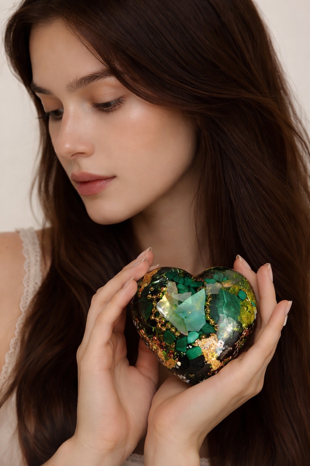 Vous souhaitez allier protection et harmonie ? j’ai mis au point cette très belle orgonite en forme de coeur : vous pourrez ainsi vous créer une douce ambiance, propice au calme et à la méditation, tout en vous sachant à l’abri de la nocivité des ondes électromagnétiques perturbatrices pour notre équilibre et notre vitalité.