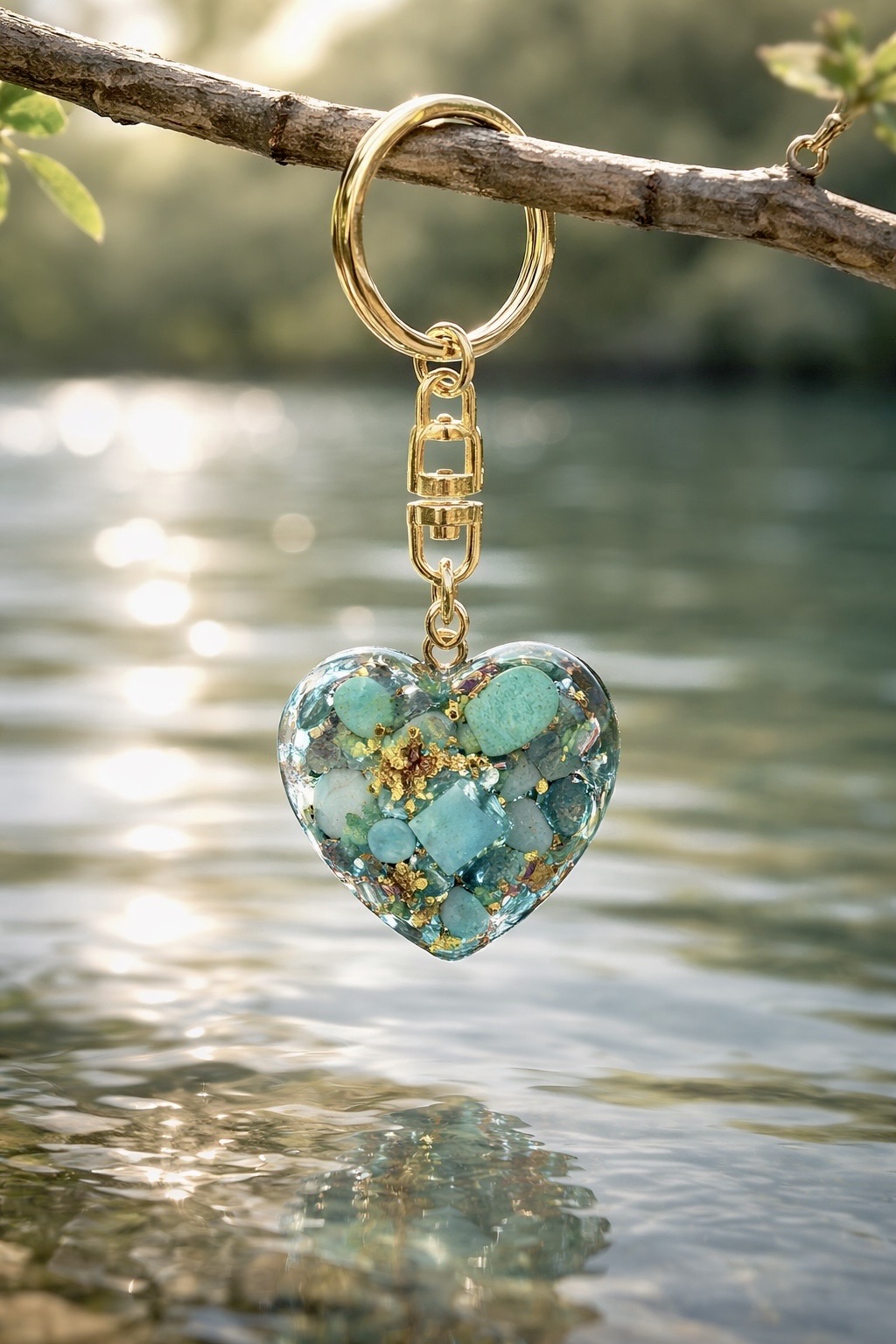 Orgonite coeur new amazonite pendentif ou porte-clefs
