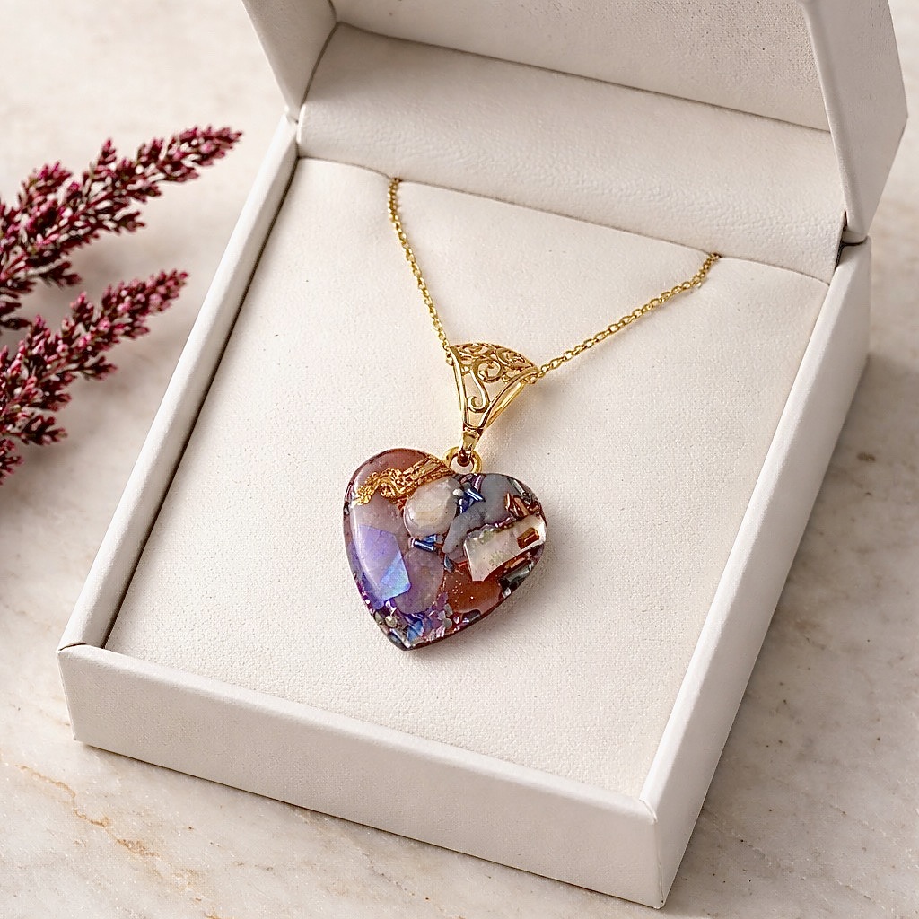 Orgonite coeur new Rosée pendentif ou porte-clefs