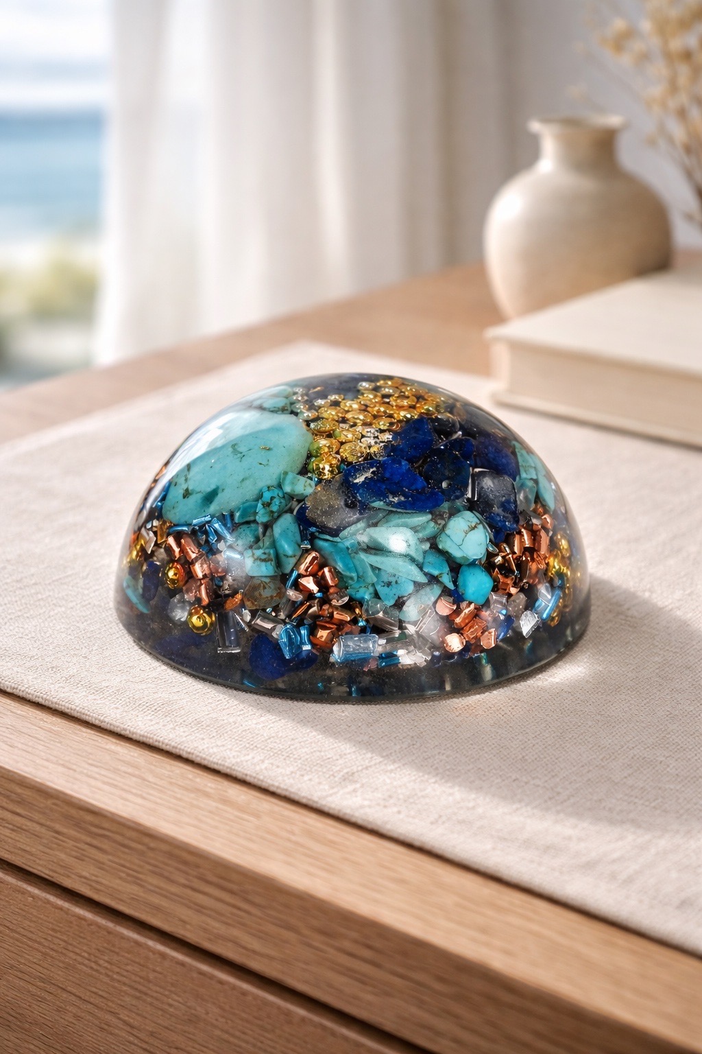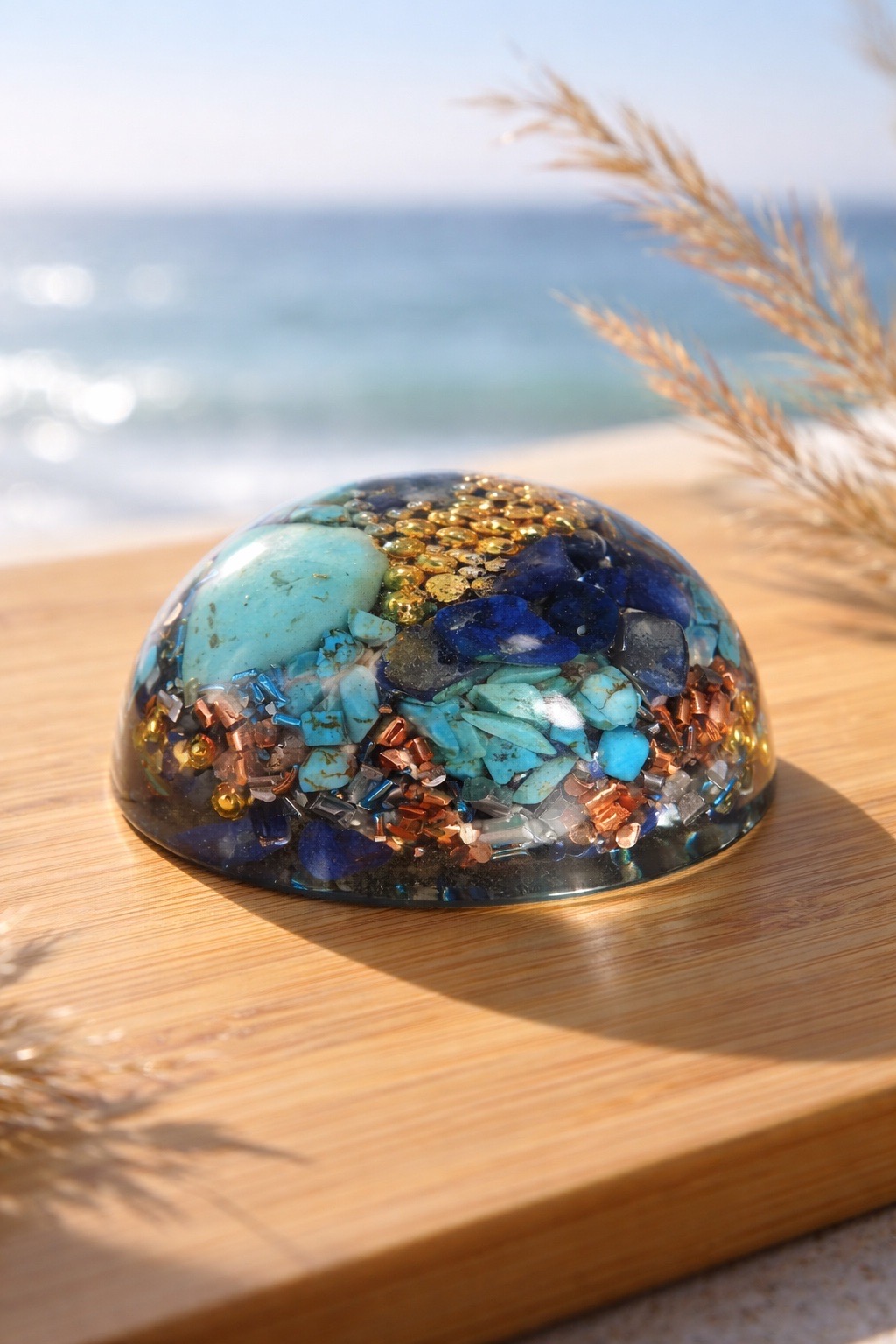 Orgonite demi-sphère turquoise lapis-lazuli