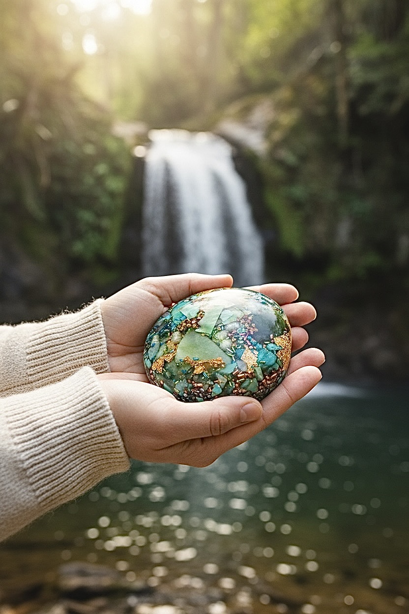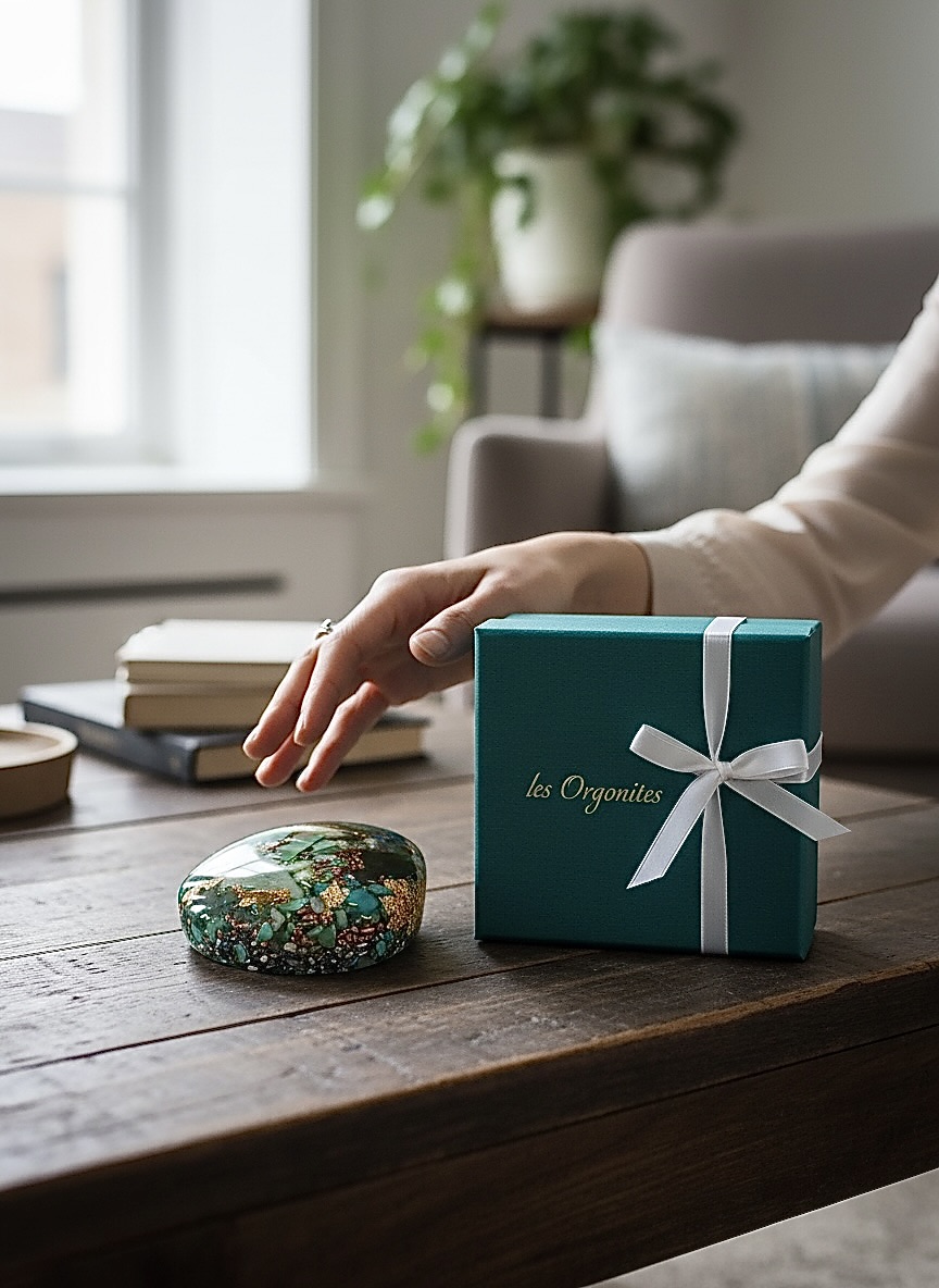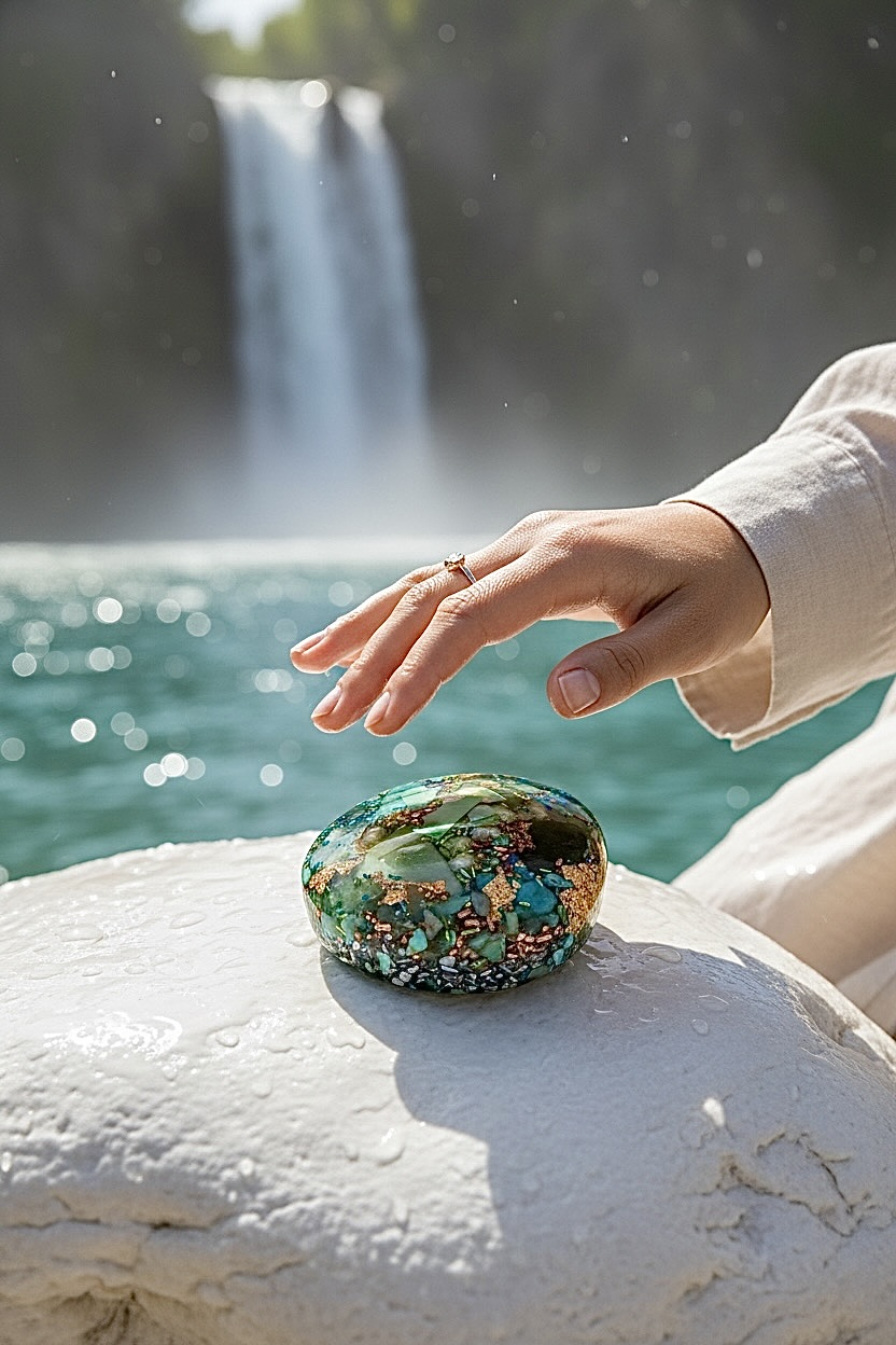 Brillant comme s’il était poli par l’eau et les marées, ce joli galet orgonite trouvera sa place naturellement dans votre logement, sur un meuble, sur la table du salon, une étagère… 🩵🌊