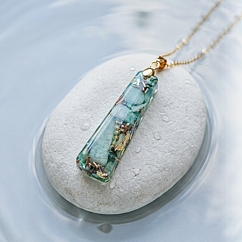Si vous ne voulez pas vous laisser atteindre par les pensées négatives, ce joli bijou orgonite à la forme originale sera votre fidèle compagnon : résolument positive, l’amazonite, pierre d’harmonie émotionnelle et mentale, est boostée par sa présence dans l’orgonite ; ainsi ce pendentif vous apportera la sérénité dont vous rêvez et favorisera l’expression de l’amour. Confiance en soi, équilibre, énergie positive, rien que du bonheur !