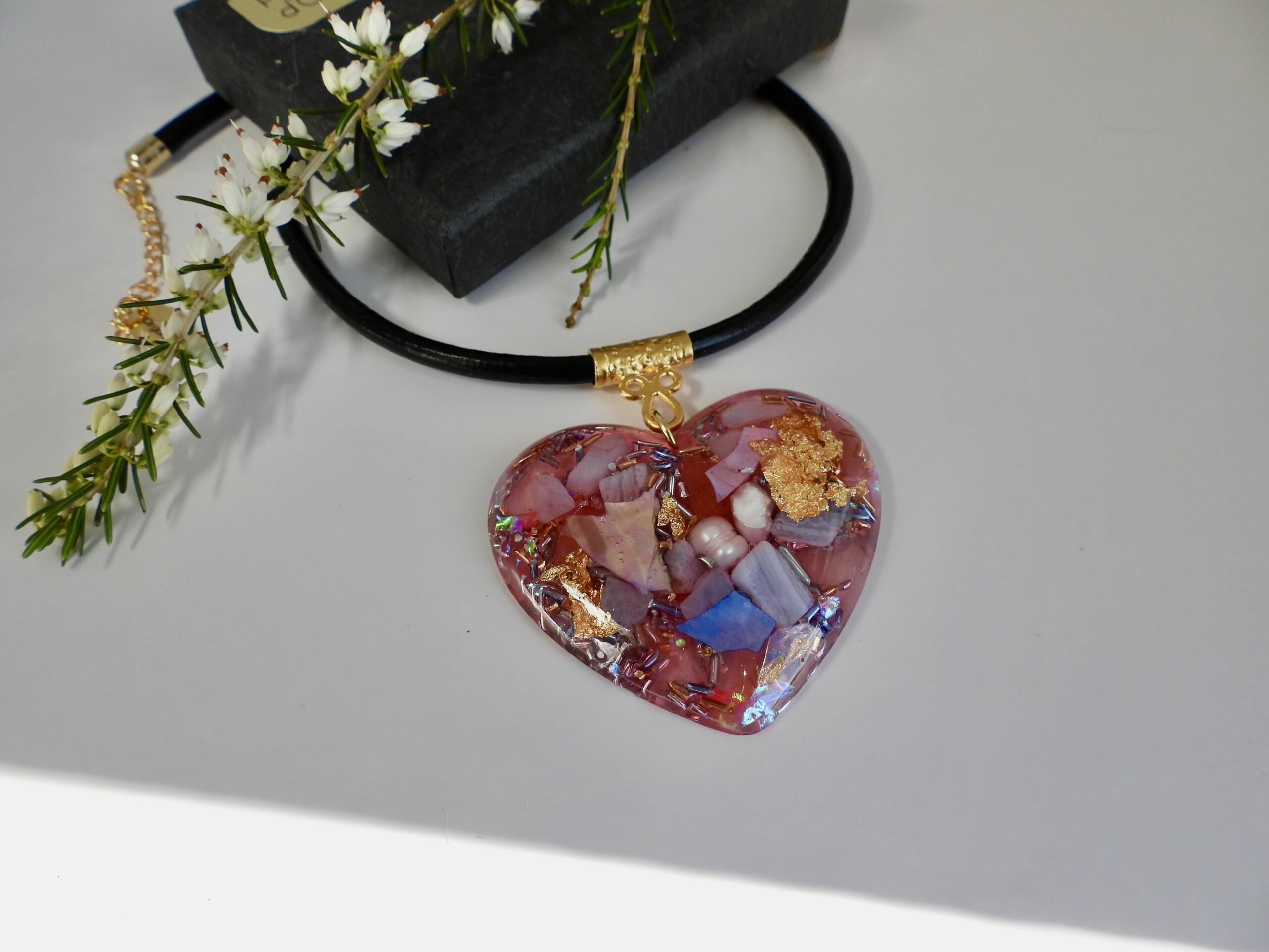 Pendentif orgonite galet coeur Rosée