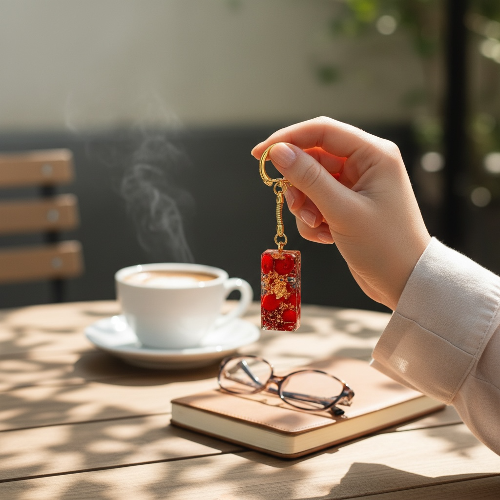 Magnifique porte clefs orgonite contenant du corail, un cristal de roche, de la feuille d’or et diffétents métaux – le corail que nous utilisons est du corail blanc teinté en rouge avec des pigments naturels, le corail rouge étant bien heureusement interdit par la législation. Sous forme de porte clefs, on peut avoir l’orgonite avec soi tout au long de la journée. Superbe, le corail correspond aux signes astrologiques du Taureau, du Cancer et des Poissons, mais tout le monde bien sûr profitera avec joie de ses bienfaits.