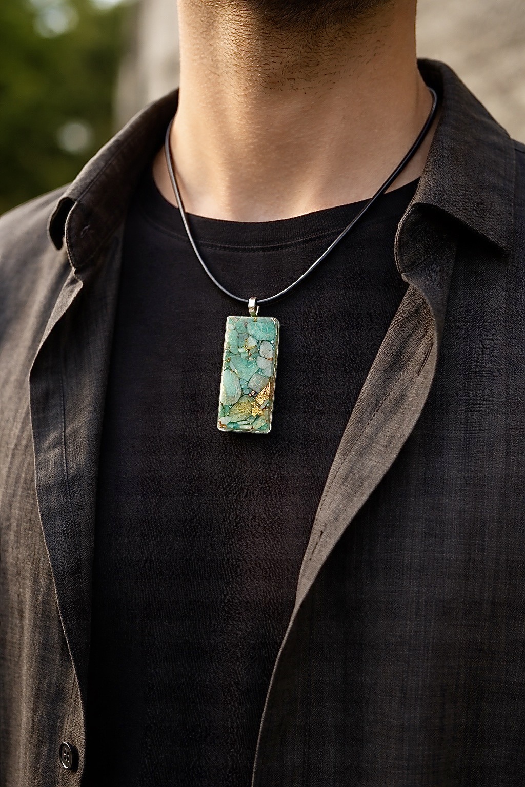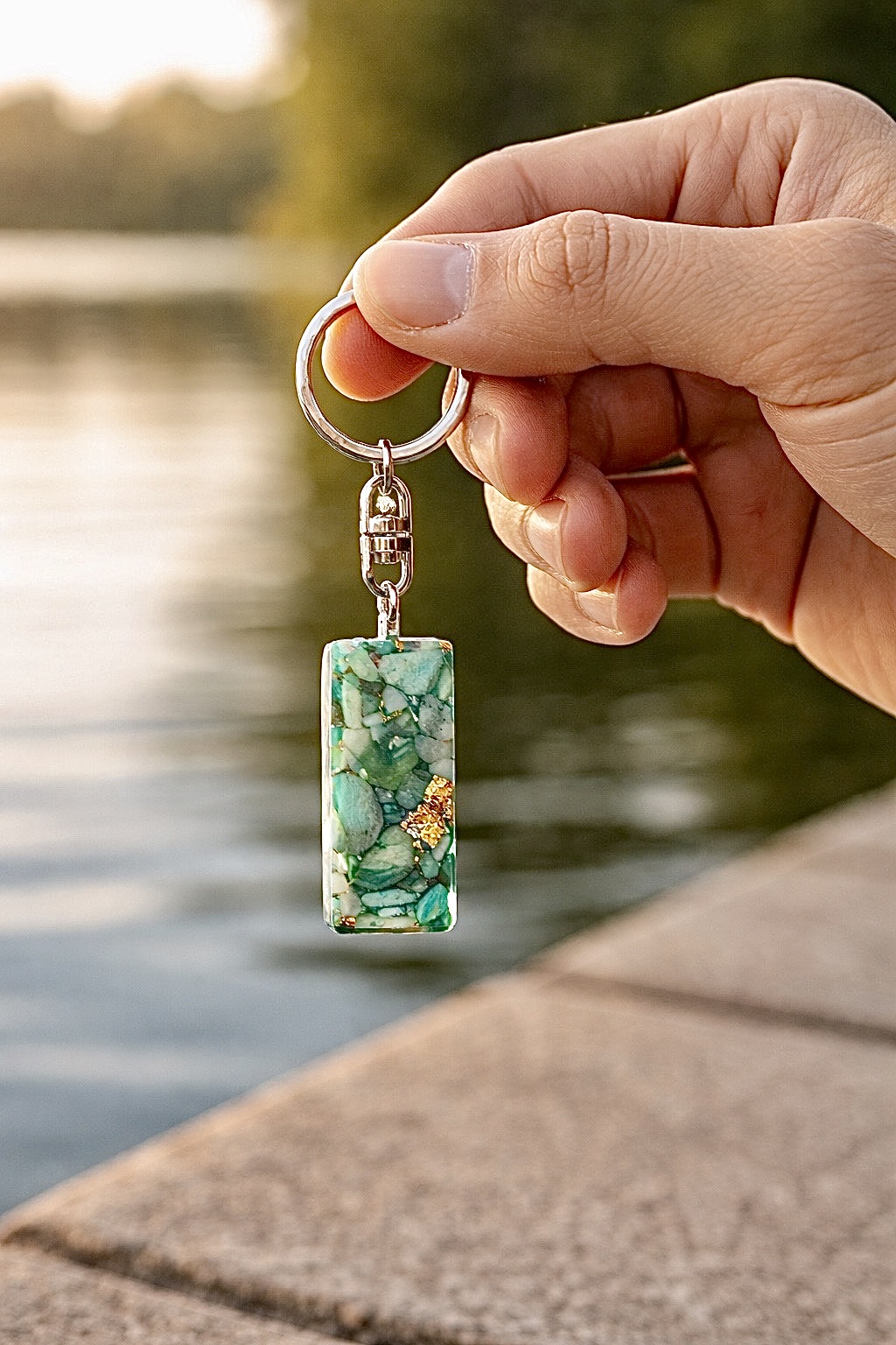 Rectangle orgonite amazonite pendentif ou porte clefs